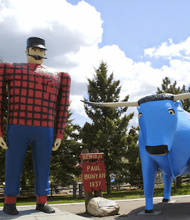 - Larger-than-life statues of the legendary lumberjack and his ox.